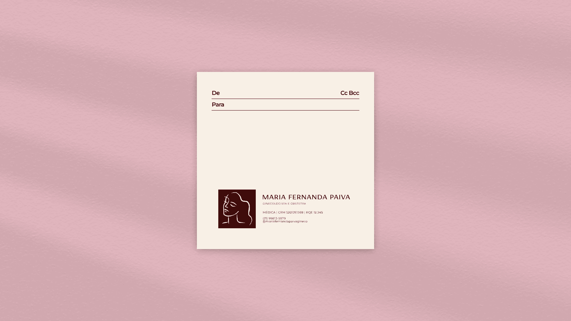 A solução veio ao deslocar o foco da especialidade para quem realmente importa na consulta: a mulher. Em vez de úteros, flores ou metáforas médicas, o símbolo nasce do rosto feminino, desenhado em traço contínuo — humano, contemporâneo e relacional. Um ícone que fala de presença, escuta e identidade.