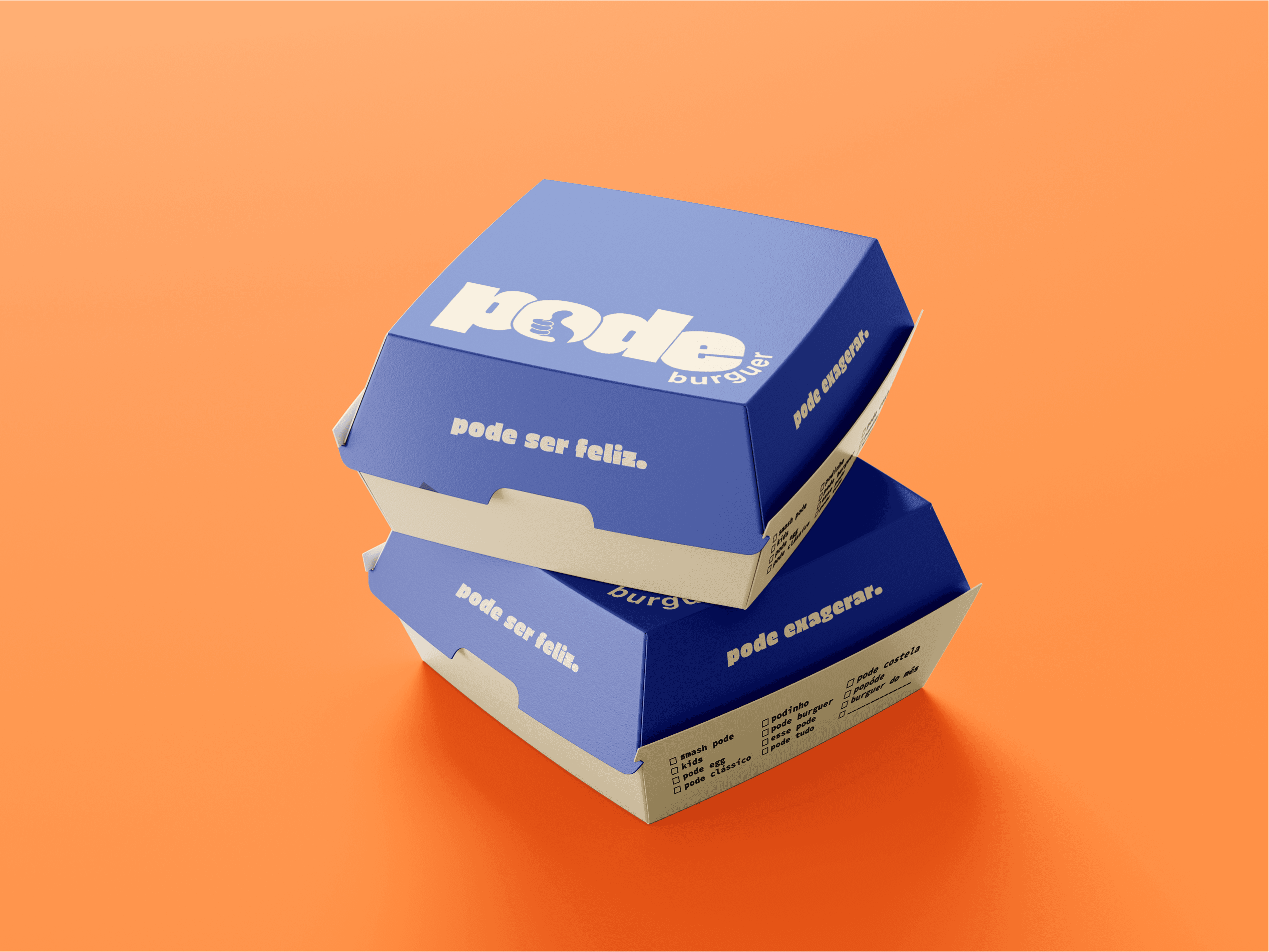 A Pode Burguer é uma hamburgueria delivery localizada em Búzios. Seu fundador, o Victor, me procurou pois sentia que a marca precisava começar a criar base para crescer. Novos horizontes estavam sendo considerados como aumentar o raio de entrega, ter um ponto físico. E, para isso, a identidade visual que havia sido feito para dar um start na marca, não estava mais transmitindo a mensagem necessário e, por isso, precisava passar por um redesign. Sim, um redesign, pois alguns itens tinham que ficar: a cor laranja, que já era mega reconhecida, e o símbolo do joinha.